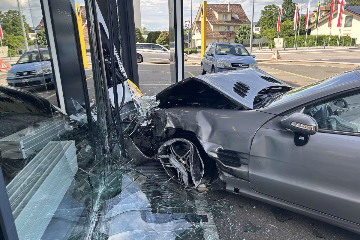 Am Freitag kam es in Altendorf zu einem Verkehrsunfall. Nach einer Streifkollision kam ein Autofahrer von der Strasse ab und kollidierte mit einem Schaufenster einer Garage. Zwei Personen verletzten sich und wurden in Spitalpflege gebracht.