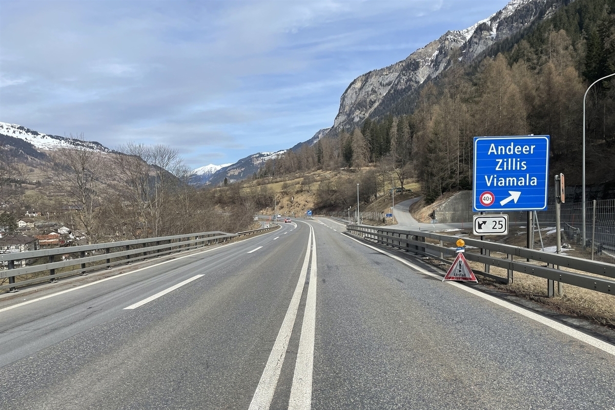 Auf der Autostrasse A13 in Andeer wurde am Donnerstagmittag ein Anhängerzug von einem Auto im Überholverbot überholt. Die Kantonspolizei Graubünden sucht Zeugen.
