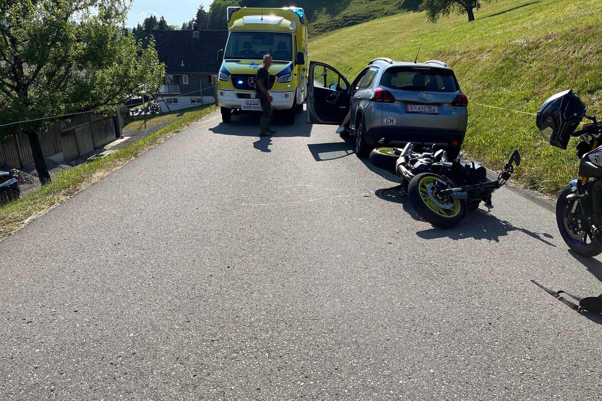 Ein 28-jähriger Mann fuhr mit seinem Motorrad von Urnäsch kommend auf der Urnäscherstrasse Richtung Bächli. Vor ihm fuhr eine 62-jährige Frau mit ihrem Auto. Die Frau musste ihr Auto abbremsen, woraufhin der 28-Jährige aus bislang unbekannten Gründen mit seinem Motorrad gegen das Heck des Autos prallte.