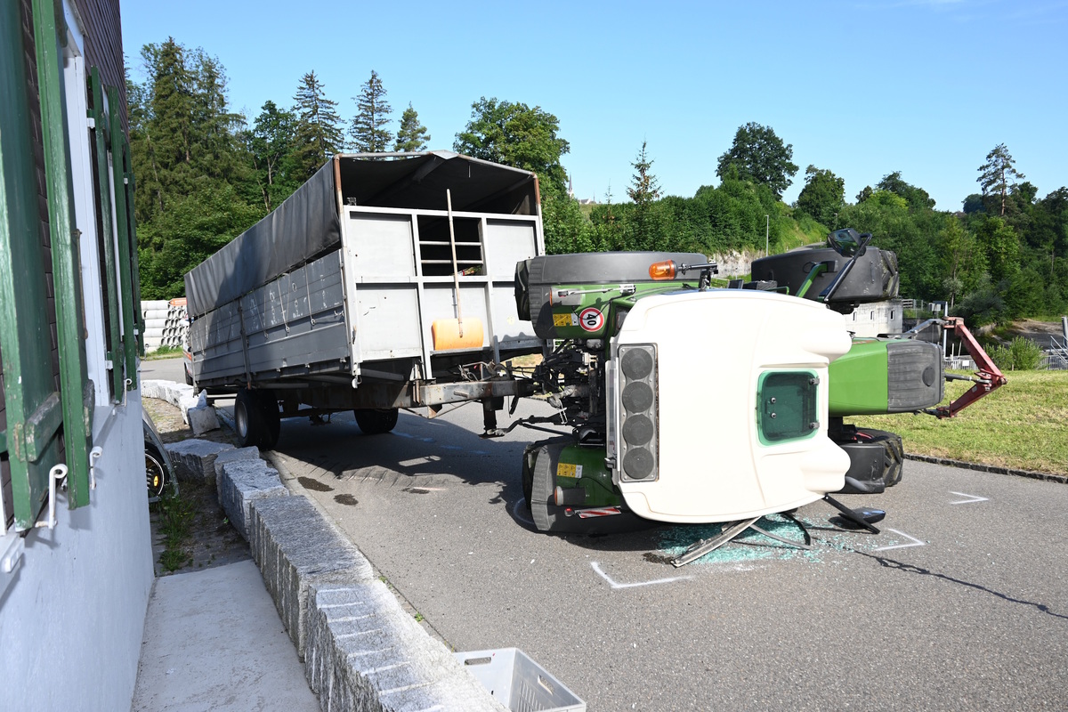 Infolgedessen gerieten sowohl Traktor als auch Anhänger auf Höhe Liegenschaft Mühlaustrasse 29 in der dortigen Linkskurve nach rechts und kollidierten mit mehreren Steinblöcken und einem Velounterstand. Durch die Kollision wurde der Traktor nach links abgewiesen und kippte zur Seite.