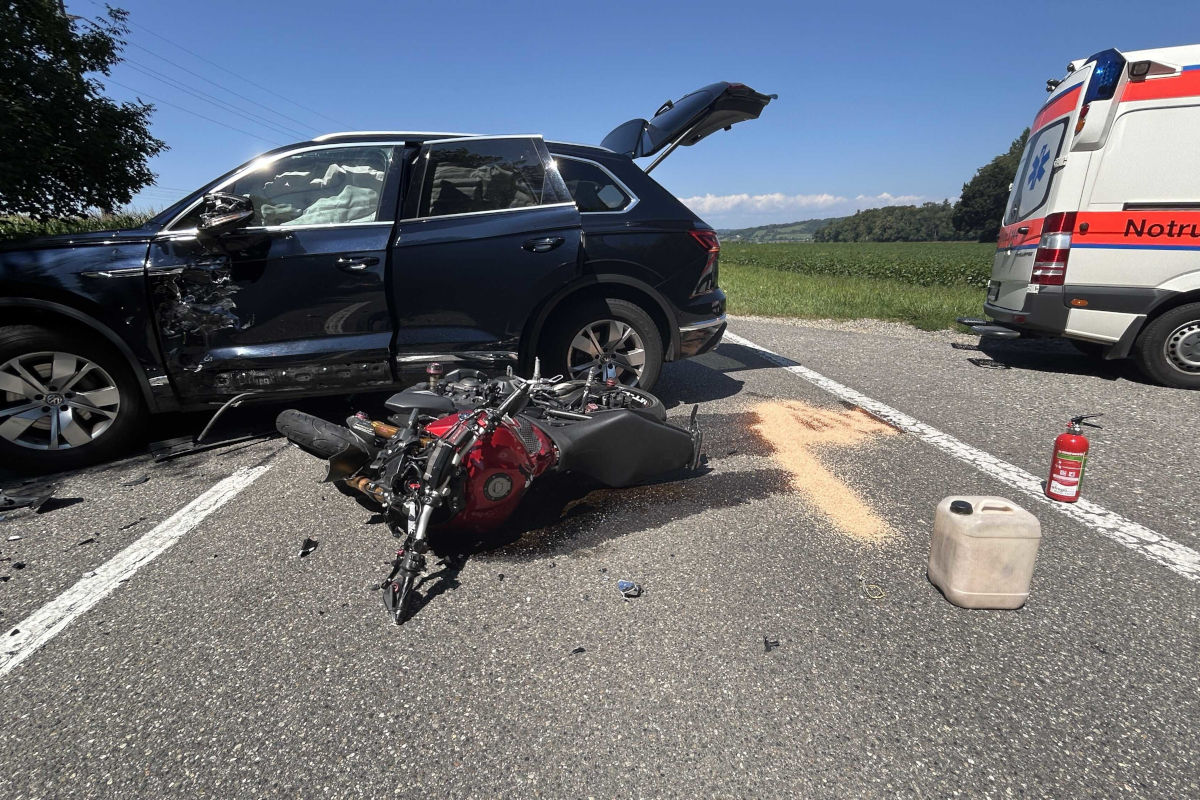 Der Motorradfahrer wurde durch den Aufprall mittelschwer verletzt. (Bildquelle: Kantonspolizei Aargau)