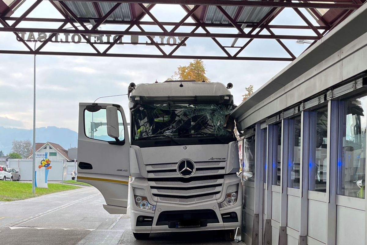 Am Donnerstag, 16. Oktober 2025, kam es in Diepoldsau zu einem Unfall mit einem Lastwagen. Der 62-jährige Chauffeur prallte beim Grenzübergang mit seinem Fahrzeug in das Zollhaus. Er wurde ins Spital gebracht. Es entstand ein Sachschaden von mehreren zehntausend Franken.