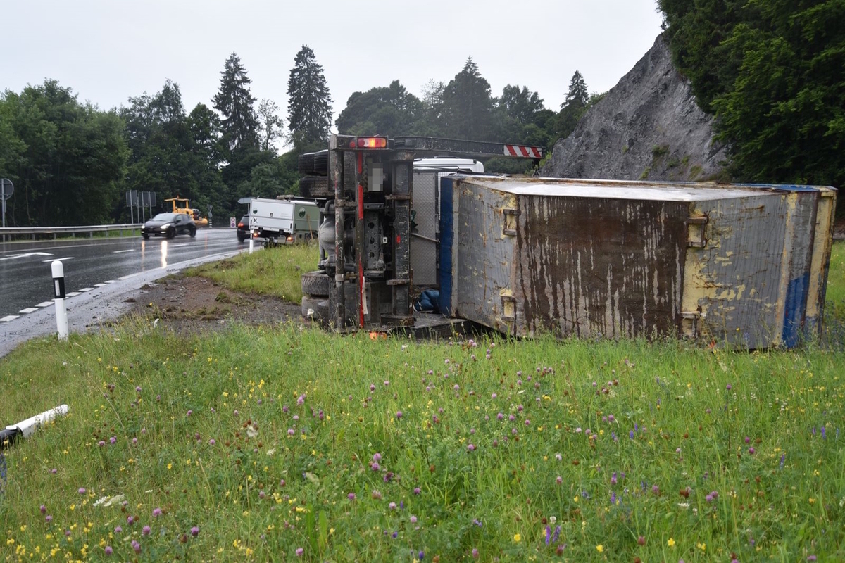 Unfall in Flims GR – Lastwagen kommt ins Schleudern und kippt