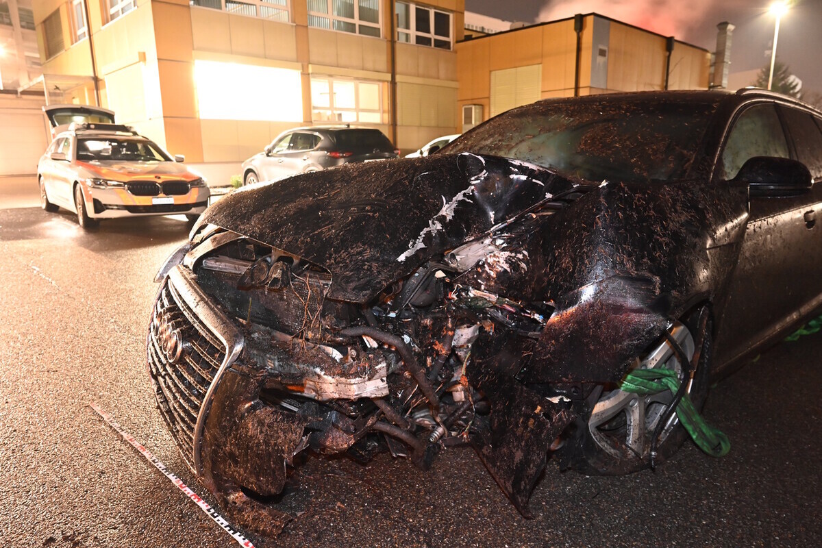 Dabei drehte sich das Auto im Uhrzeigersinn und fuhr in der Folge in das anliegende Wiesland. Dort prallte es frontal in einen Baum, welcher durch die Wucht des Aufpralls umstürzte, und kam in einer Hecke zum Stillstand.