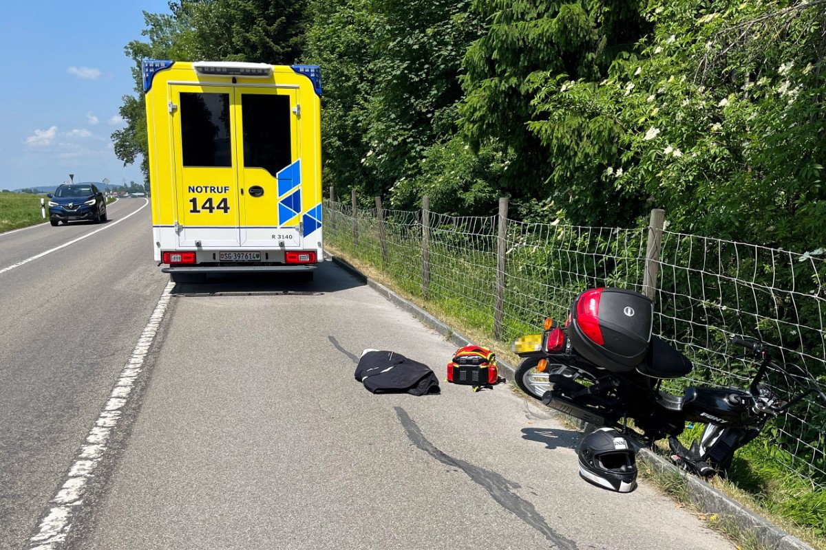Ein 49-jähriger Mann fuhr mit seinem Mofa von Gossau Zentrum in Richtung Niederwil. Auf Höhe Nutzenbuecherwald kam der 49-Jährige aus unbekannten Gründen über den rechten Fahrbahnrand hinaus.