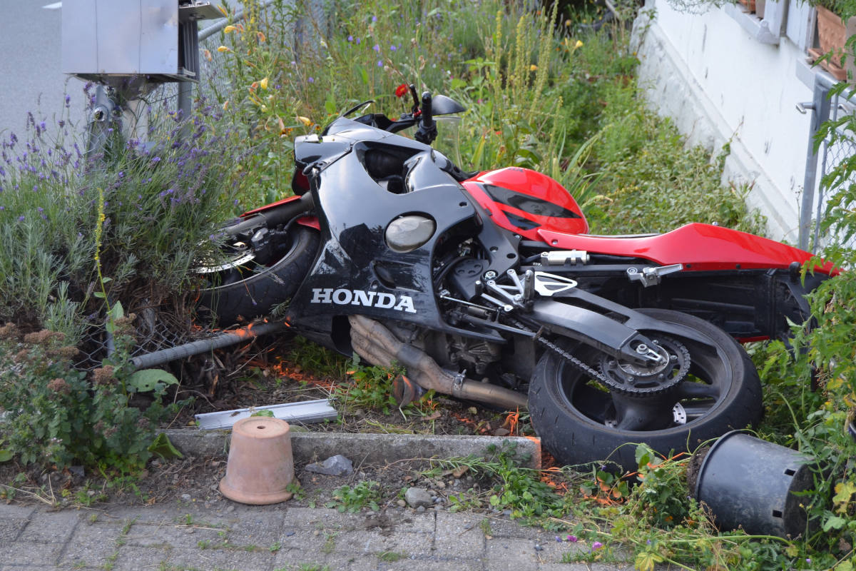 Sachschaden ist am Donnerstag, 11. August 2022, bei einem Selbstunfall mit einem Motorrad in Grub AR entstanden.