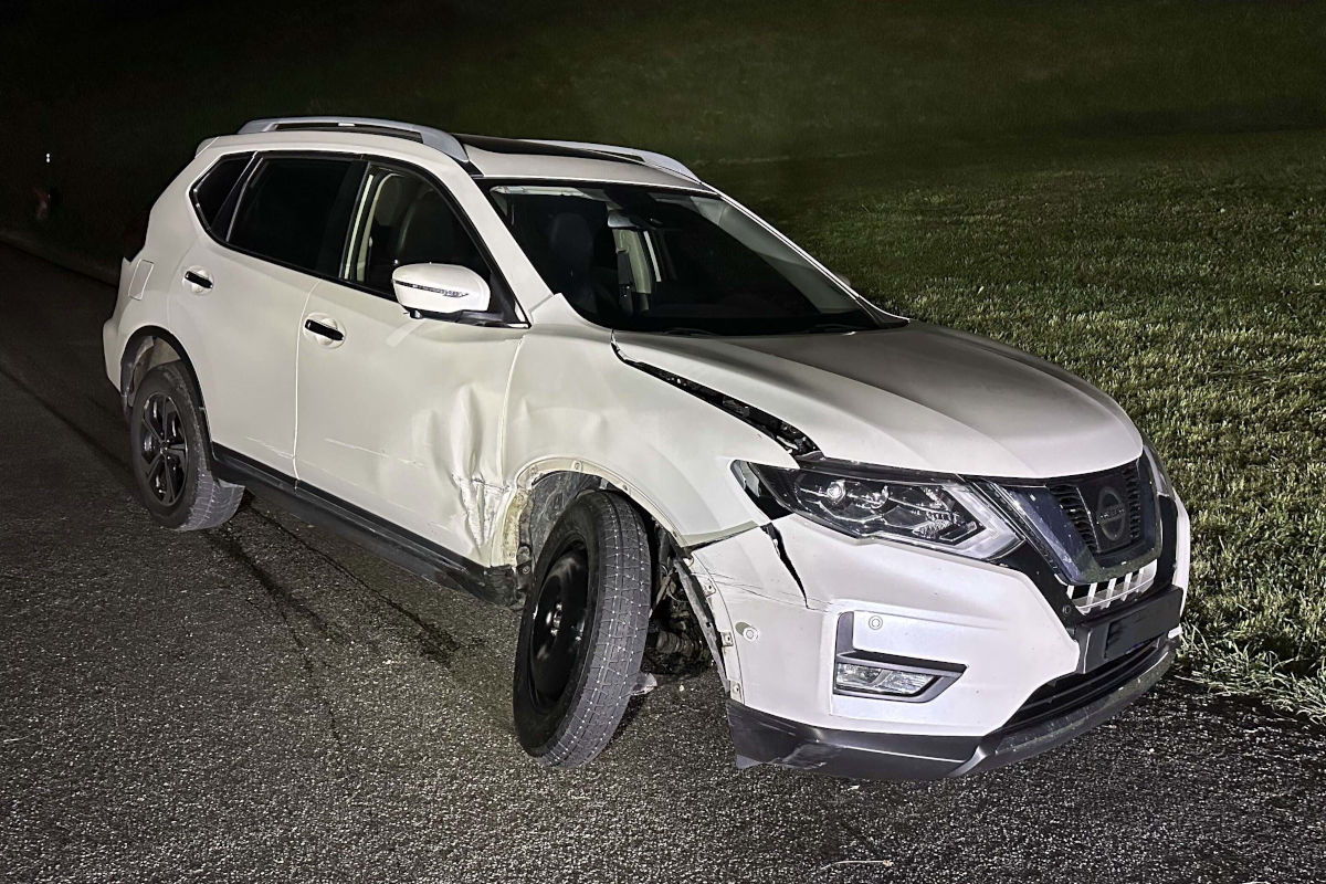 Der Mann montierte anschliessend das Reserverad anstelle des defekten rechten Vorderrades. Trotzdem war das Auto aufgrund des entstandenen Schadens nicht mehr fahrbar.