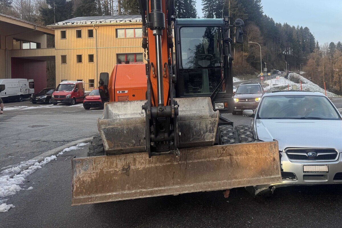 Das Auto erlitt Totalschaden, beim Bagger entstand hingegen sehr geringer Sachschaden. Der Personenwagen wurde durch den Abschleppdienst abtransportiert.