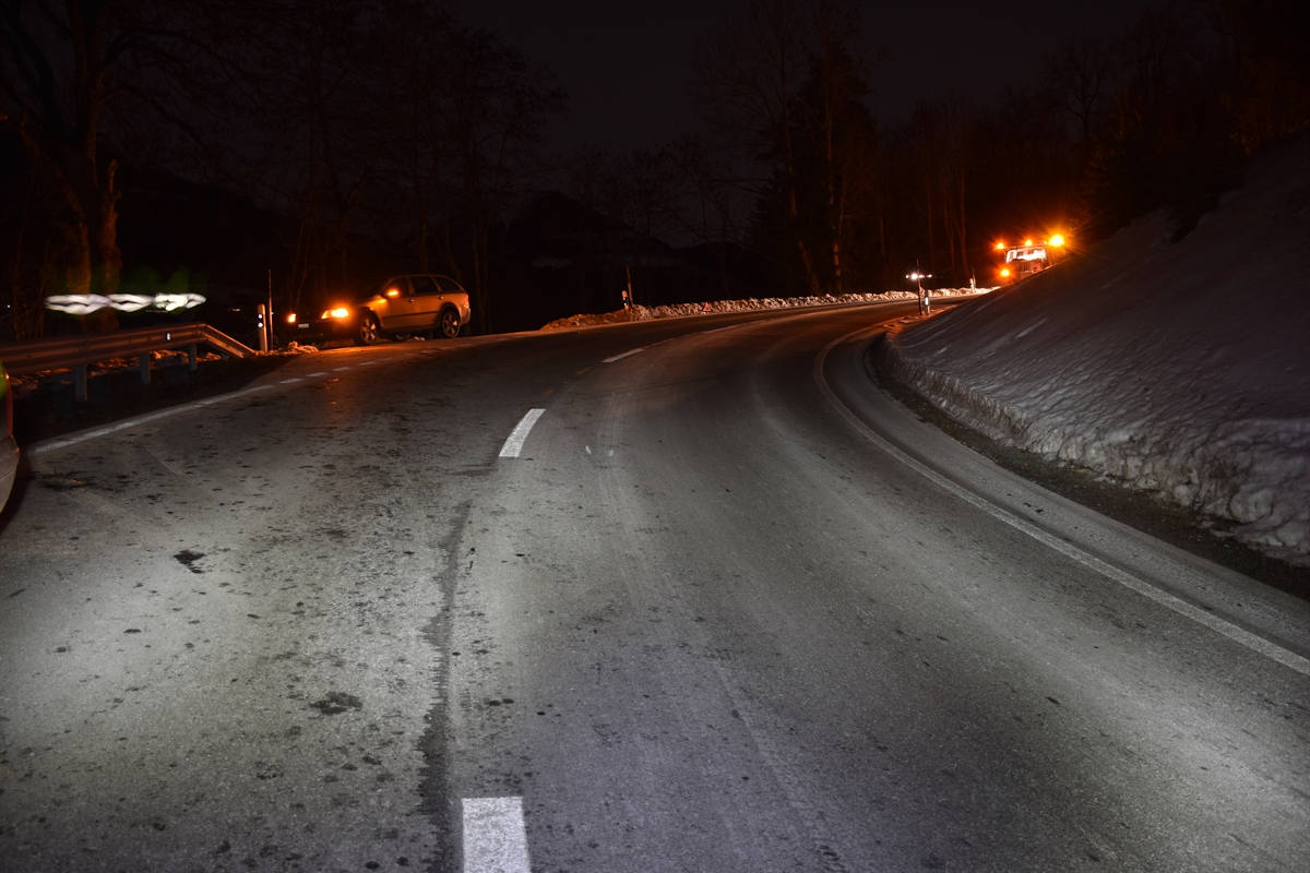 Kurve aus Sicht der bergwärts fahrenden Person in Ilanz (Bildquelle: Kantonspolizei Graubünden)