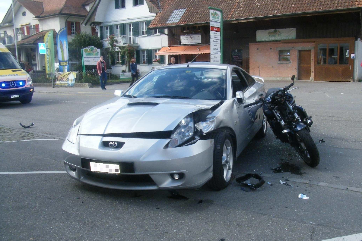 Gestern ereignete sich in Kerzers eine Kollision zwischen einem Motorrad und einem Personenwagen. Beide Fahrzeuglenker erlitten dabei Verletzungen.