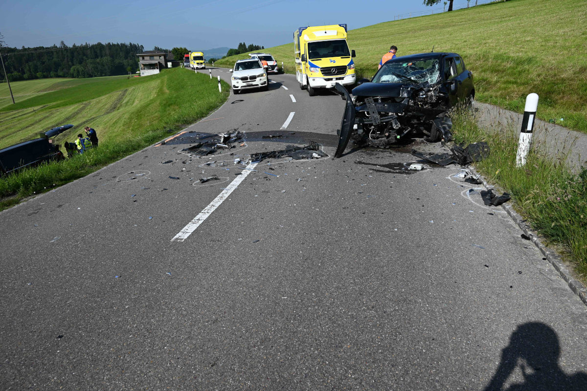 Auf Höhe Brunnenwis kam es zur Frontalkollision zwischen den beiden Autos. Durch den Zusammenprall wurde ein Auto in das angrenzende Wiesland abgewiesen, während das andere Auto auf der Fahrbahn zum Stillstand kam.