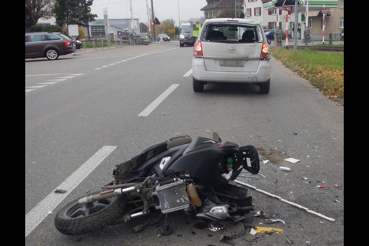 Durch den Aufprall wurde der Rollerfahrer in Märwil teils schwer verletzt (Bildquelle: Kantonspolizei Thurgau)