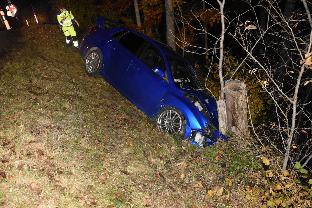 Am Sonntagabend (25.10.2020), kurz nach 20:15 Uhr, ist es auf der Staatsstrasse zu einem Selbstunfall eines Autos gekommen. Dabei wurden zwei Mitfahrende leicht verletzt.