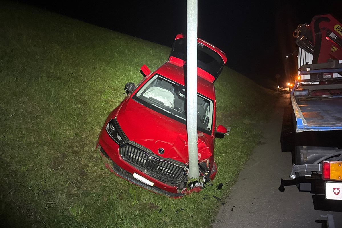 Am Mittwoch kam es in Oberegg zu einem Verkehrsunfall eines Autofahrers. Der Lenker kam mit seinem Fahrzeug von der Strasse ab und kollidierte mit einem Beleuchtungskandelaber. Am Fahrzeug entstand Totalschaden. Der Lenker sass alkoholisiert hinter dem Steuer.