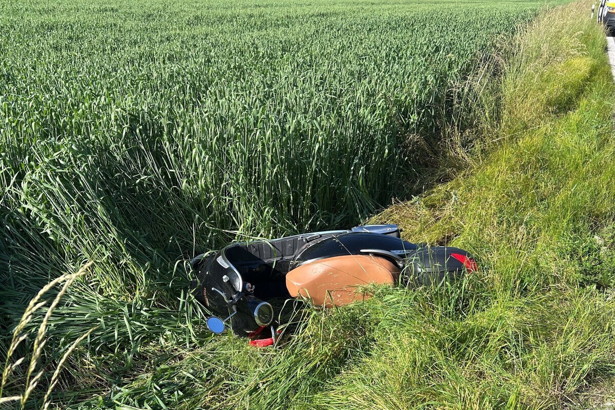 Um eine Kollision zu verhindern, wich der Rollerfahrer nach rechts in ein Feld aus. Dabei stürzte er und zog sich Verletzungen zu. Eine Ambulanz brachte ihn ins Spital. Am Roller entstand Sachschaden.