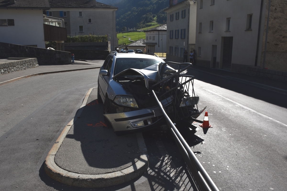 In San Carlo kollidierte am Dienstag ein Auto auf einer Bushaltestelle mit einem Geländer. Der Lenker wurde in ein Spital gebracht.