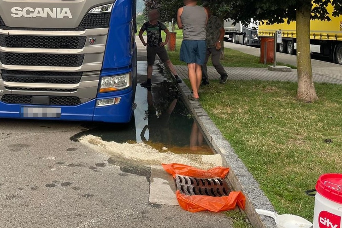 Der 34-jährige Ukrainer führte um 19.40 Uhr auf der Raststätte Campagnola ein Fahrmanöver aus, um sein Sattelmotofahrzeug für die Übernachtung abzustellen. Dabei missachtete er eine Signalisation, was die Aufmerksamkeit einer Patrouille der Kantonspolizei Graubünden auf ihn zog. Diese beobachtete, wie er sich an einem Betonsockel den rechten Dieseltank aufriss und auf den Parkplatz fuhr. Die beiden Polizisten richteten mit Abfallsäcken und Ölbinder behelfsmässige Sperren an zwei Abwasserschächten ein. Sie veranlassten das Aufgebot der Feuerwehr, eines Spezialisten des Amtes für Natur und Umwelt und schlossen die Raststätte.