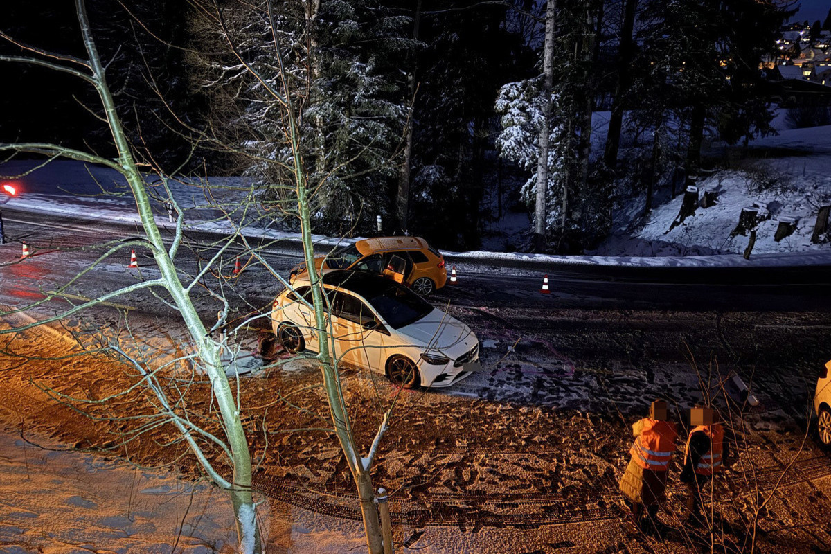 Auf der Rehetobelstrasse ist ein Auto bei Schneeglätte auf die Gegenfahrbahn geraten und mit einem entgegenkommenden Fahrzeug kollidiert. Eine Person wurde leicht verletzt.
