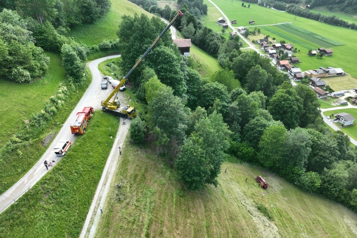 Am Freitagnachmittag, um 16:20 Uhr, ereignete sich im Gebiet Puzzastg Sut unterhalb der Via Val bei Surrein ein Unfall mit einem Heuladewagen. Dabei wurde der Fahrzeuglenker mittelschwer verletzt.