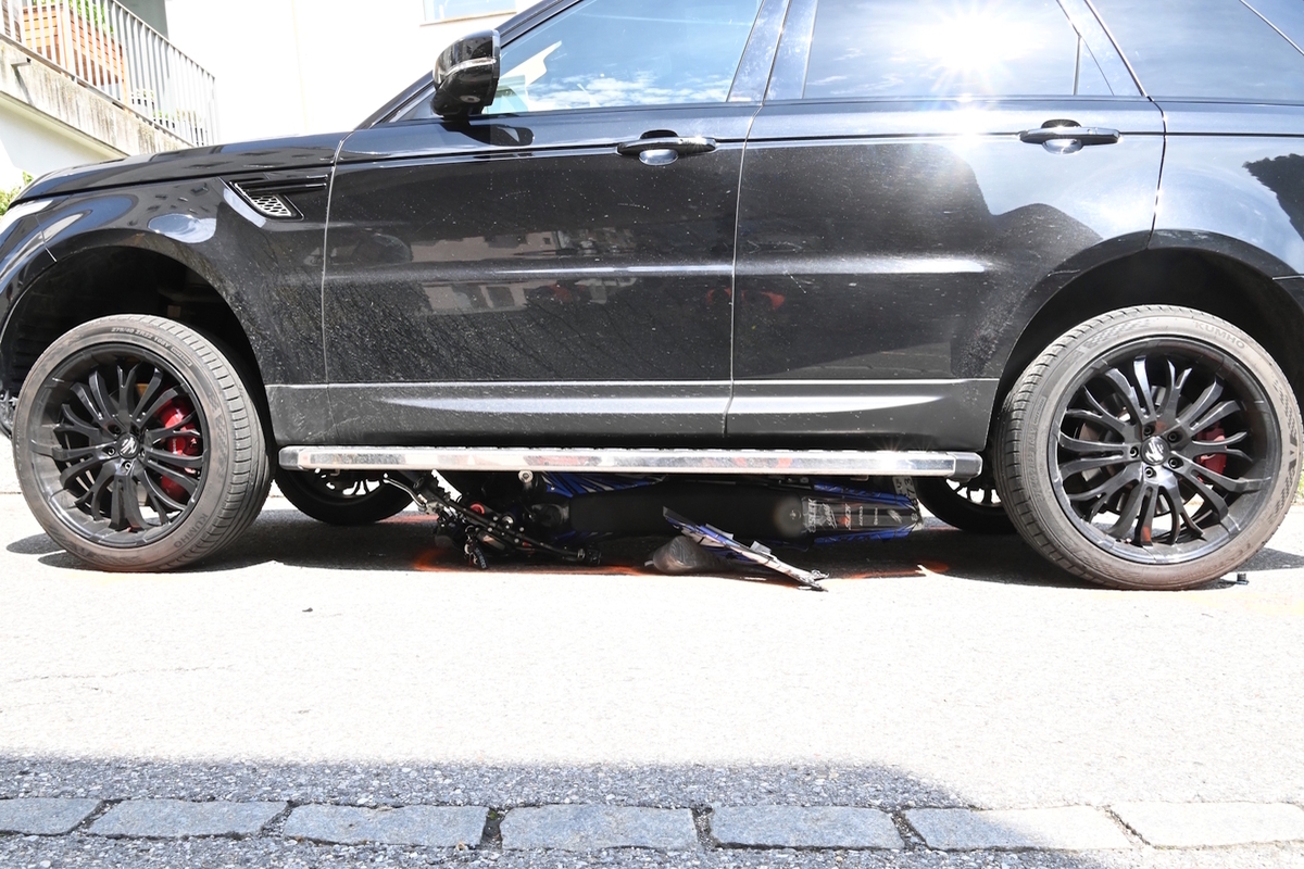 Unfall in Thusis GR – Auto erfasst Motorrad und schleift es mit