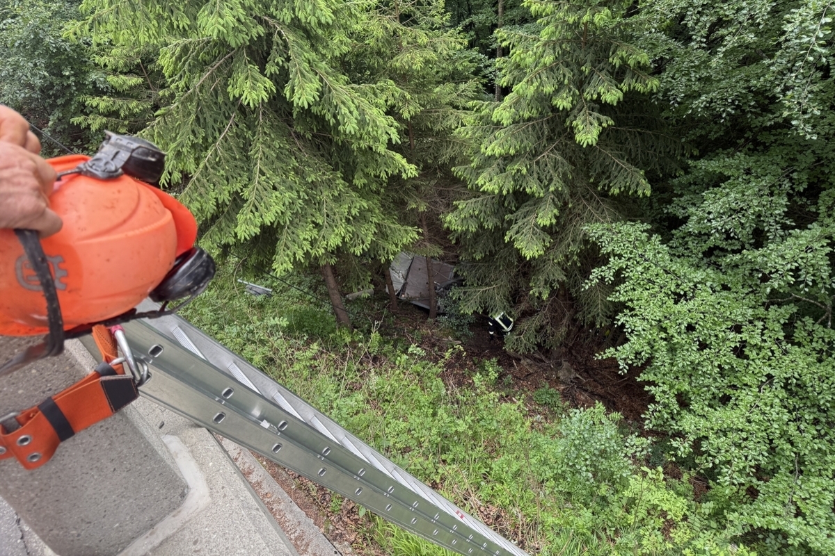 Unfall in Unterschächen UR – Fahrzeug stürzt rund 80 Meter in ein steiles Waldstück
