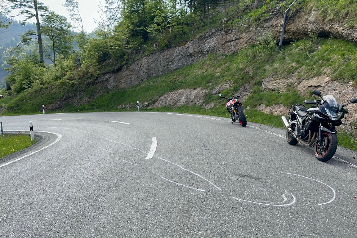 Bei einem Unfall gestern in Urnäsch stürzten eine Motorradfahrerin und ein Motorradfahrer zu Boden. Beide wurde glücklicherweise nur leicht verletzt.