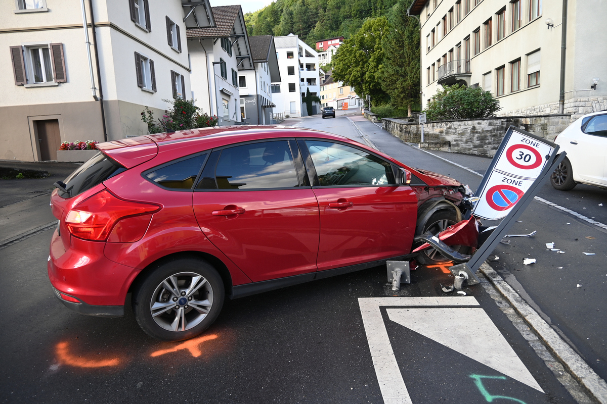 Unfall in Vaduz FL - Kollision mit einem Strassenverkehrszeichen