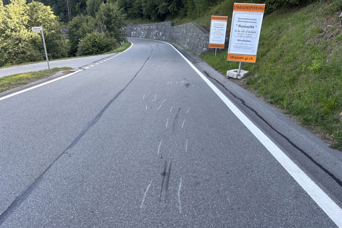 Drei österreichische Motorradfahrer fuhren gegen 15 Uhr auf der Rechtsrheinischen Oberländerstrasse von Ilanz kommend in Richtung Bonaduz. Kurz nach der Verzweigung nach Safiental hielt der vorderste Motorradfahrer rechts am Fahrbahnrand an, um eine Informationstafel über eine Strassensperrung zu konsultieren.