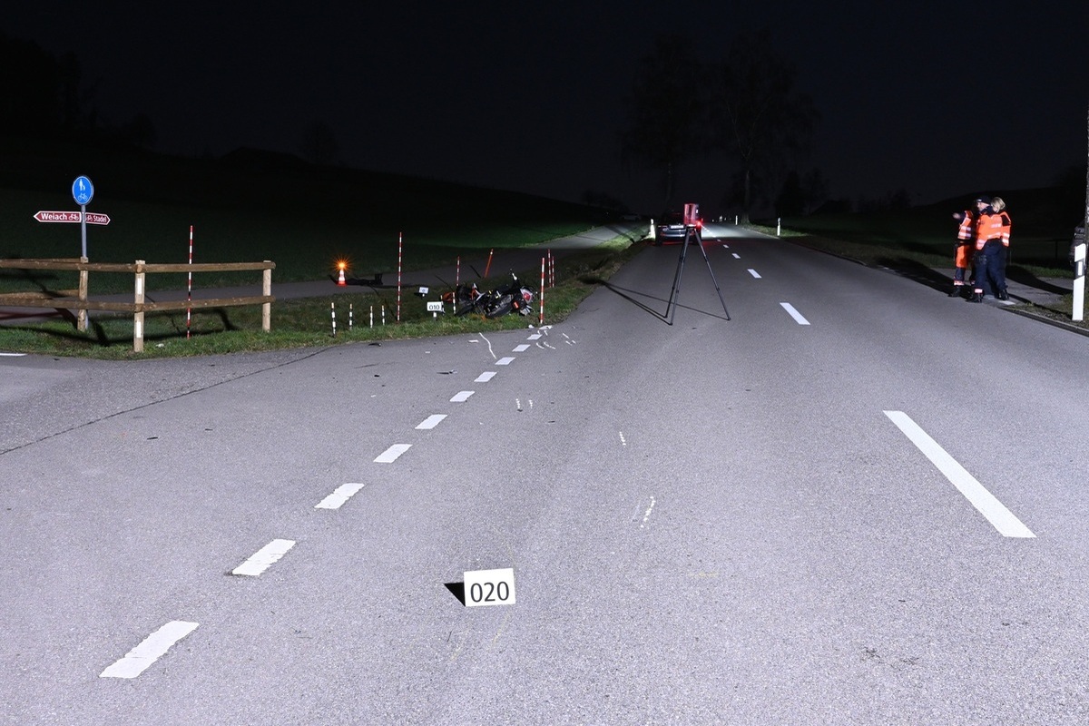 Kurz vor 20 Uhr fuhr ein Motorradfahrer auf der Stadlerstrasse Richtung Raat. Auf Höhe der Verzweigung mit der Steinbruchstrasse kam es auch noch unbekannten Gründen zur Kollision mit einem Elektroroller, der in gleicher Richtung fuhr. Das Motorrad stürzte links der Fahrbahn in einen Bach; der Elektroroller kam im Wiesland zu Fall.