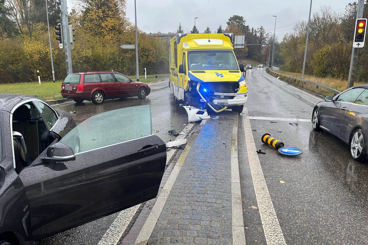 Am Sonntag (12.11.203), kurz nach 14 Uhr, kam es auf der Georg-Renner-Strasse zu einem Unfall zwischen einem Rettungswagen und einem Auto. Zwei Personen wurden leicht verletzt. Es entstand Sachschaden.