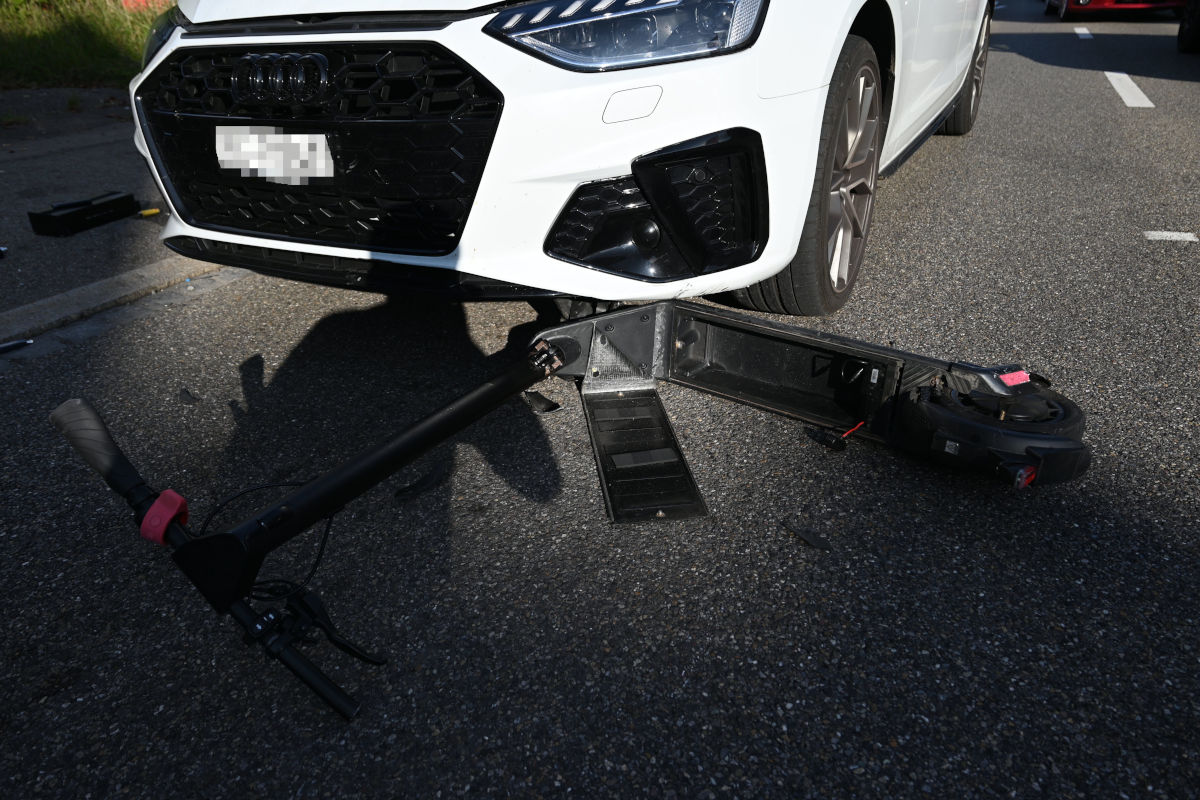 Als der 39-Jährige die Strasse überquerte, rollte die Autokolonne aufgrund der Grünschaltung des Lichtsignals los. Der 39-Jährige kollidierte mit seinem E-Scooter mit dem Auto der 64-Jährigen. Durch die Kollision prallte der Mann auf die Frontscheibe und stürzte anschliessend zu Boden.