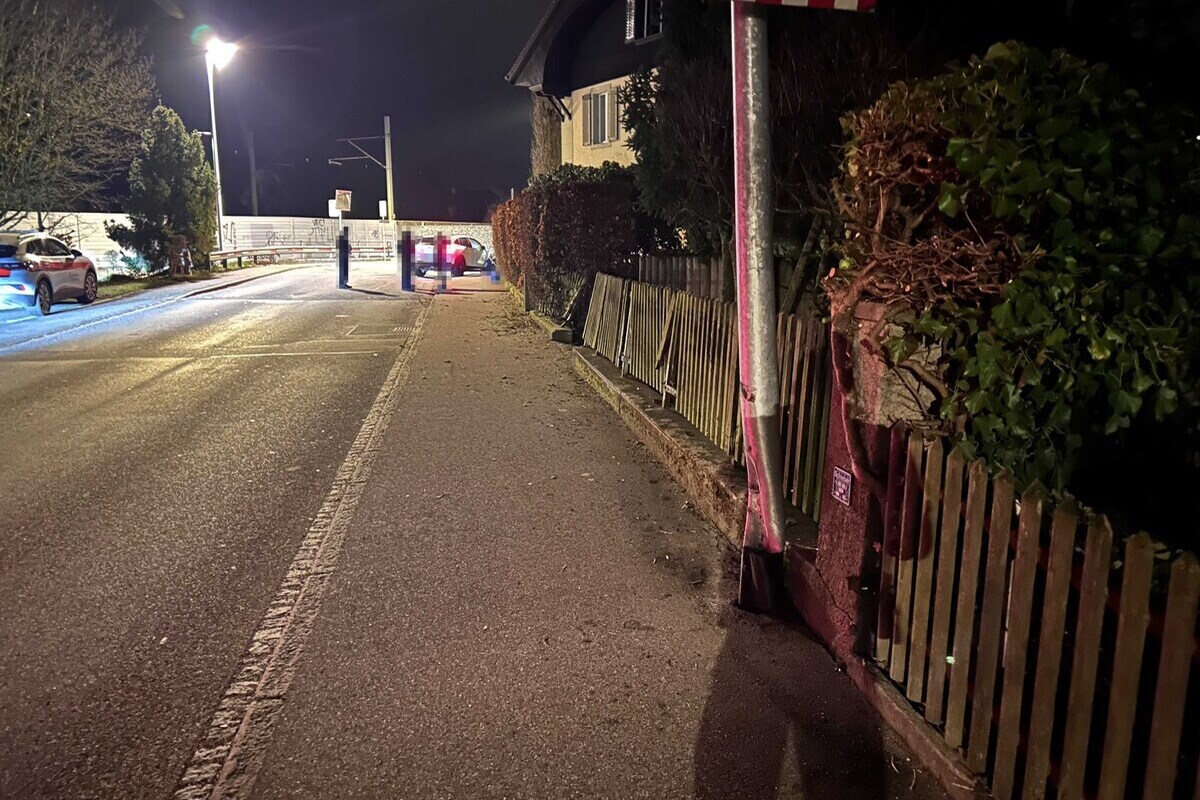 Verletzt wurde niemand. An der Strasseneinrichtung, am Zaun und am Auto entstand erheblicher Sachschaden. Ein Atemalkoholtest ergab einen stark erhöhten Wert.