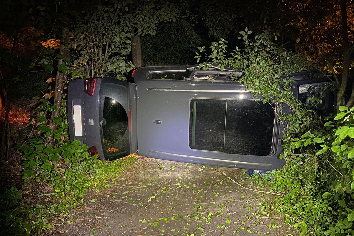Ein Junglenker verlor die Kontrolle über sein Auto, kollidierte mit einem Baum und blieb seitlich über einem Bachbett liegen. Es gab keine Verletzten.