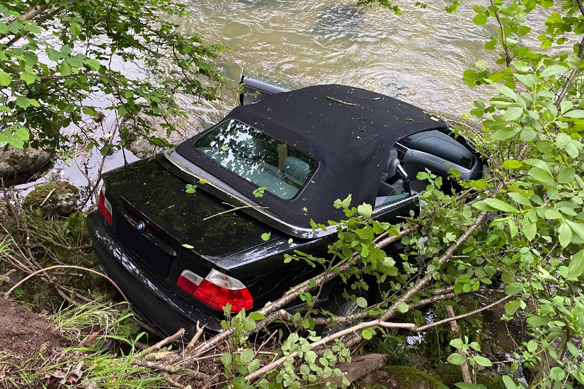 Mit dem BMW im Fluss gelandet. (Bildquelle: Zuger Polizei)
