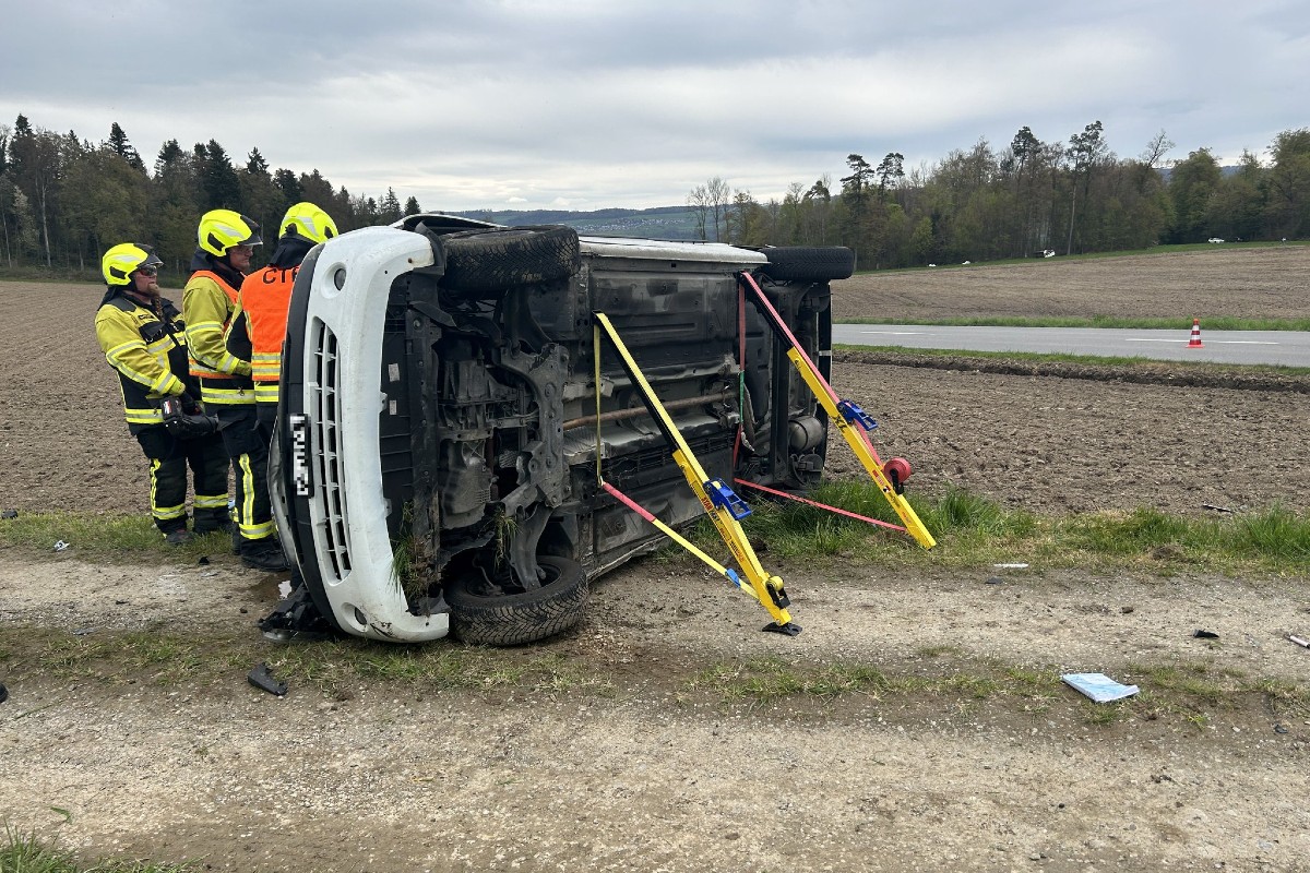Nach einem Fahrfehler kam ein Personenwagen von der Strasse ab und überschlug sich. Die Beifahrerin musste von der Feuerwehr aus dem Unfallfahrzeug befreit werden.