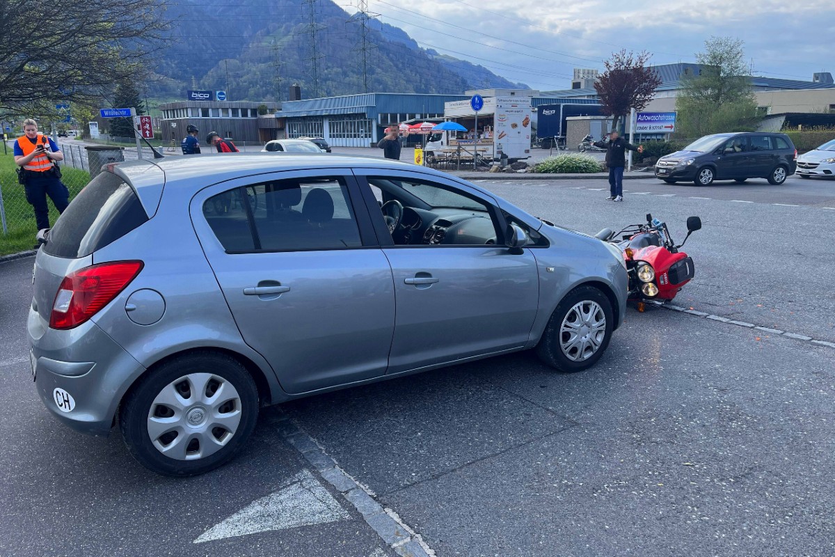 Unfall wischen Auto und Motorrad in Schänis im Kanton St. Gallen