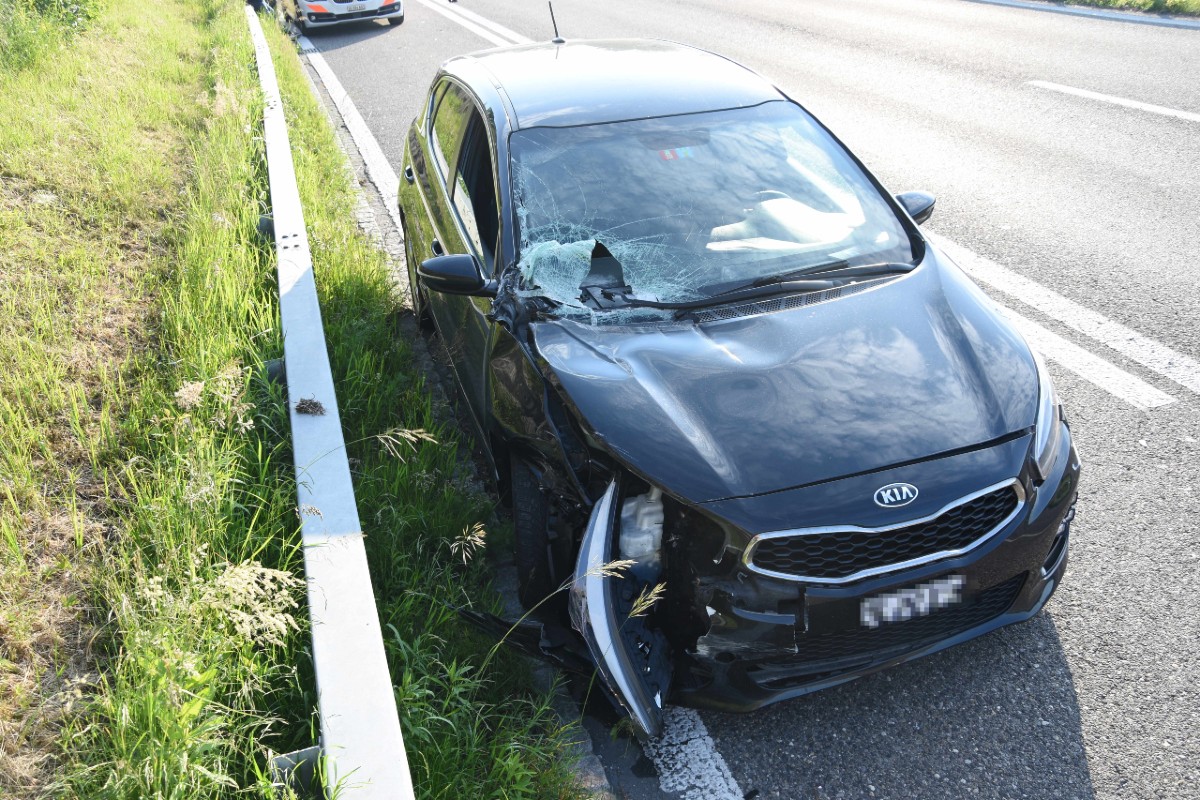 Das Auto fuhr gegen den Unterfahrschutz des Lastwagens, woraufhin der Autofahrer bremste und nach links lenkte. Daraufhin prallte er gegen die Mittelleitplanke, wurde dort abgewiesen, schleuderte über beide Fahrstreifen zurück und kam auf dem Pannenstreifen zum Stillstand. Der 36-jährige Autofahrer verletzte sich dabei leicht und suchte selbstständig einen Arzt auf.