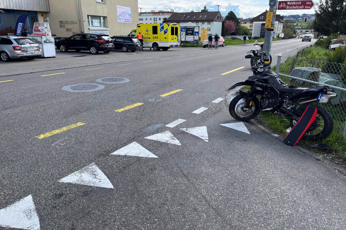 Eine 29-jährige Frau fuhr mit ihrem Auto auf der Isenringstrasse und bog an deren Ende in die Flawilerstrasse ein. Gleichzeitig fuhr eine 26-jährige Frau auf ihrem Motorrad auf der Flawilerstrasse Richtung Gossau. Im Einmündungsbereich kam es zum Zusammenstoss zwischen den beiden Fahrzeugen. Dabei wurde die Motorradfahrerin eher leicht verletzt.