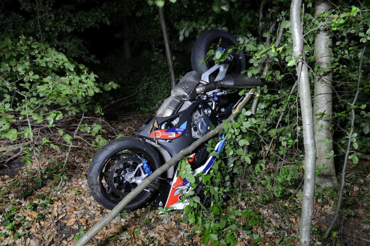 Am Motorrad, das in den Wald geschleudert wurde, entstand