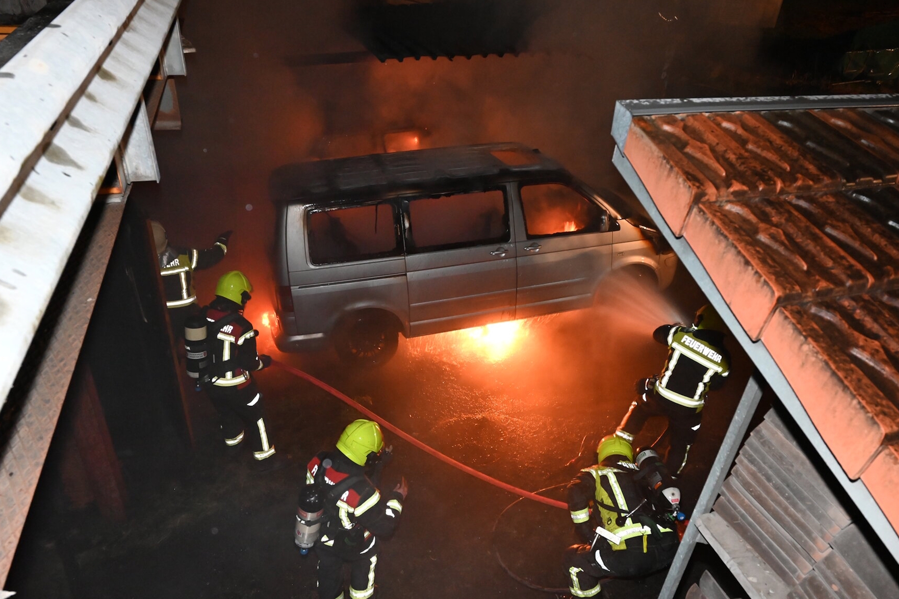 Die ausgerückte Feuerwehr traf das Auto in Vollbrand an und stellte fest, dass sich das Feuer bereits weiter ausgebreitet hatte.