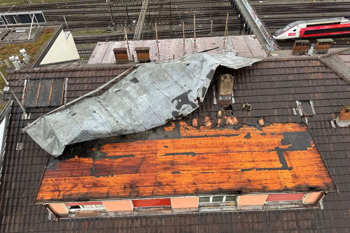 Im Gundeli wurde eine Dachabdeckung in Mitleidenschaft gezogen. (Bildquelle: Kantonspolizei Basel-Stadt)