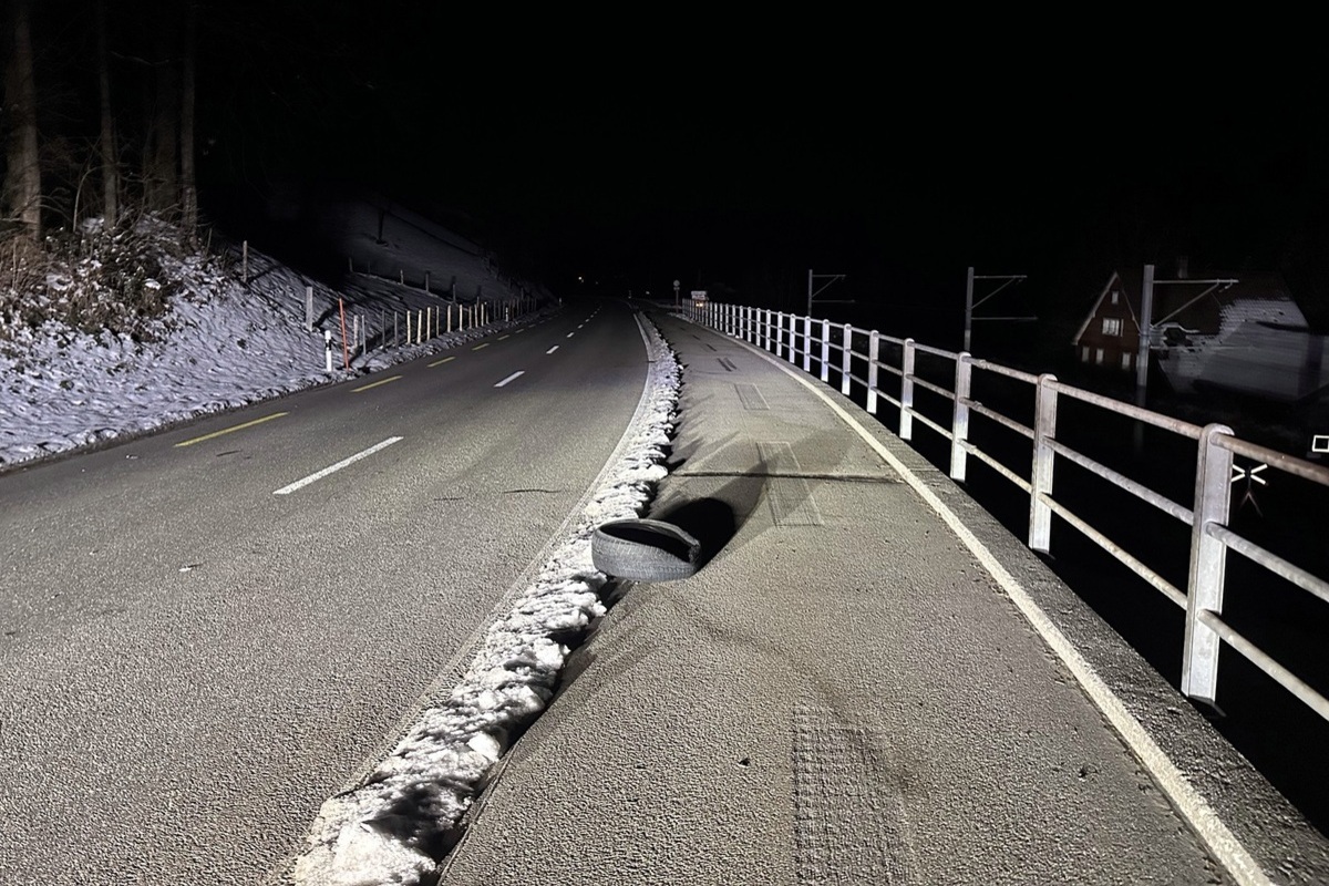 Abgerissener Pneu am Unfallort (Bildquelle: Kantonspolizei Appenzell Ausserrhoden)