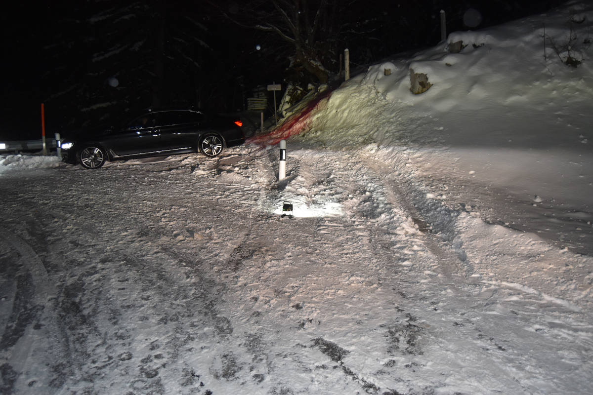 Ins Rutschen geraten und gegen Pfahl gekracht (Bildquelle: Kantonspolizei Appenzell-Ausserrhoden)