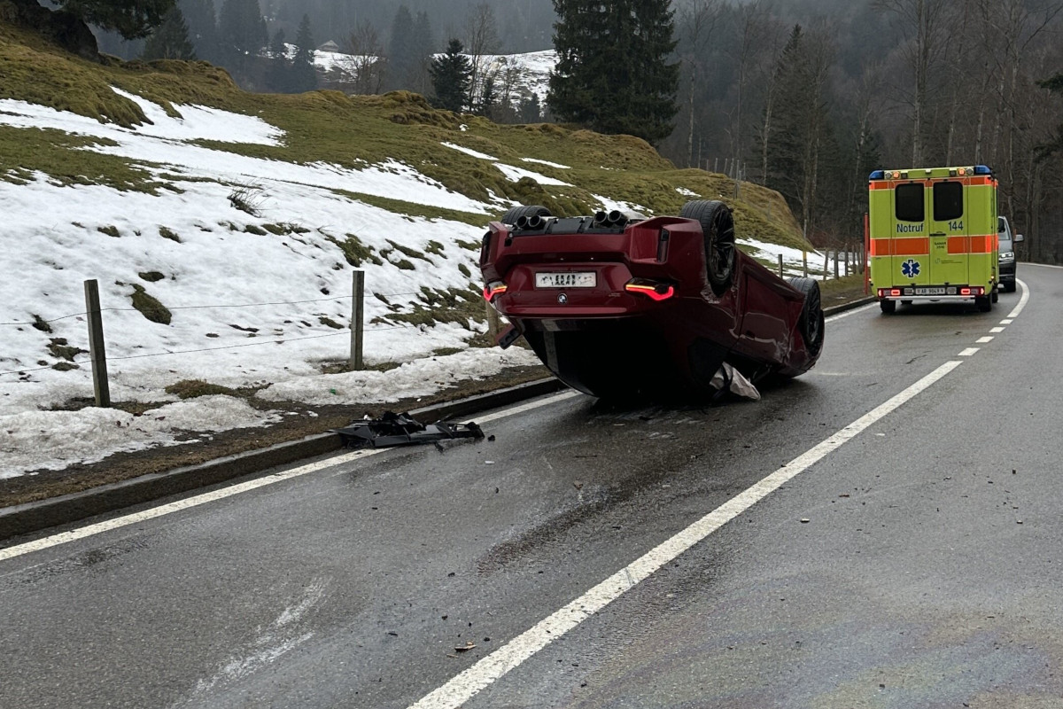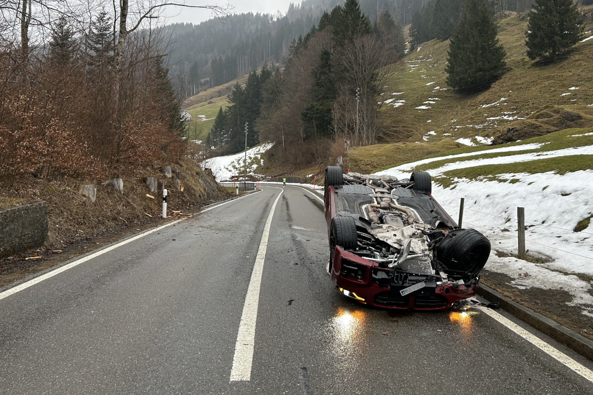 Am Samstag, 14. Februar 2026, kam es in Urnäsch zu einem Unfall eines Autofahrers. Ein Autolenker kam bei einer Probefahrt mit einem BMW von der Strasse ab und überschlug. Der Beifahrer erlitt unbestimmte Verletzungen. Das Auto erlitt Totalschaden.