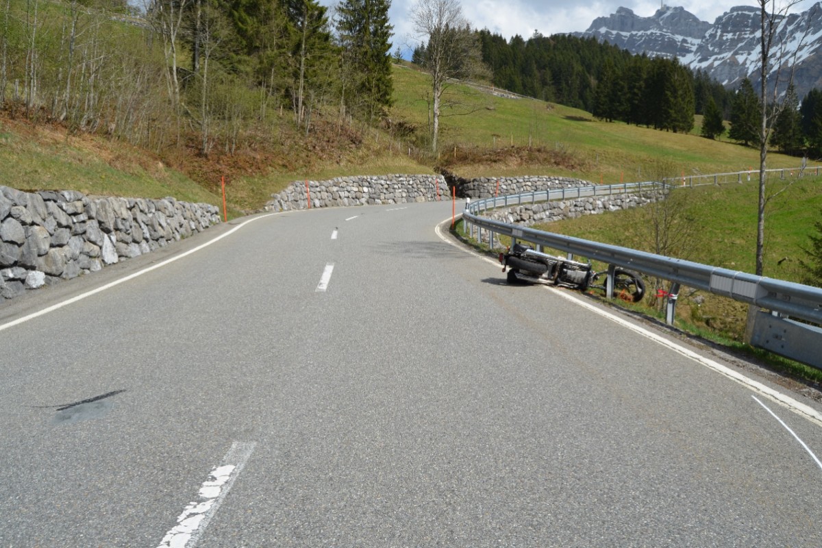 Um 14.40 Uhr fuhr ein 52-jähriger Motorradlenker von Urnäsch kommend in Richtung Schwägalp. Im Bereich oberer Grossgarten, verlor der Zweiradfahrer in einer Linkskurve die Herrschaft über sein Fahrzeug.