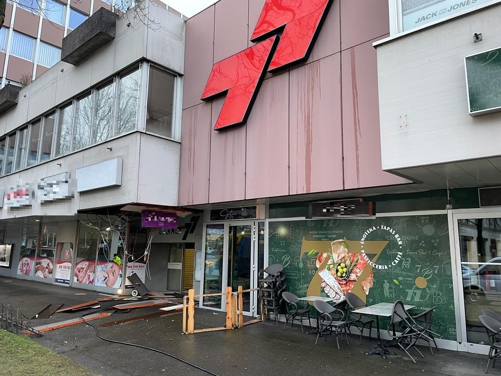 Aussenansicht Zentrum mit einem der geschädigten Lokalitäten (Bildquelle: Kapo ZH)