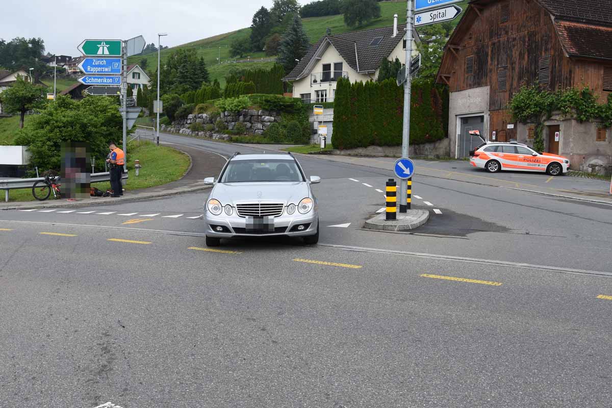 Kollision zwischen Velo und Auto in Uznach (Bildquelle: Kantonspolizei St.Gallen)