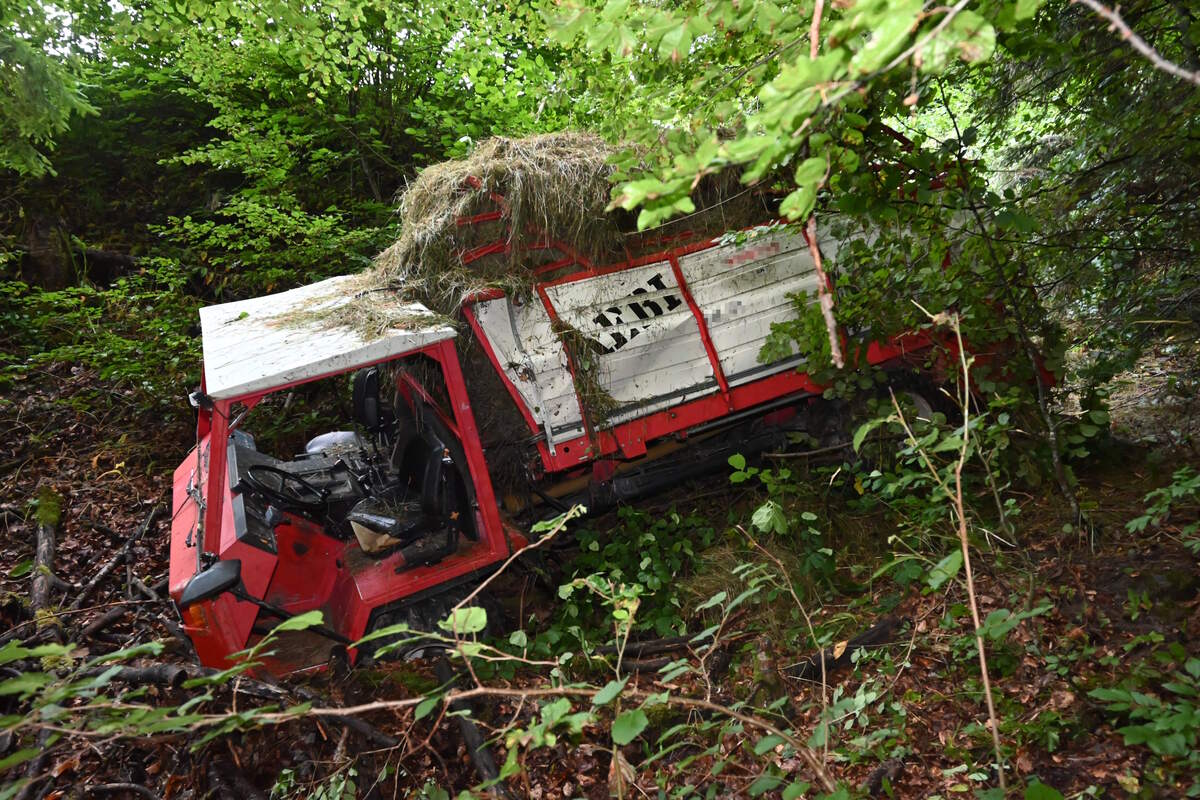 Der Beifahrer konnte den Motorkarren noch rechtzeitig verlassen. Dem 43-Jährigen gelang dies nicht mehr, woraufhin er mit dem Motorkarren rund 50 Meter den Hang hinunterrutsche. Dabei überschlug sich der Motorkarren mehrfach und kam schliesslich im Dickicht zum Stillstand.
