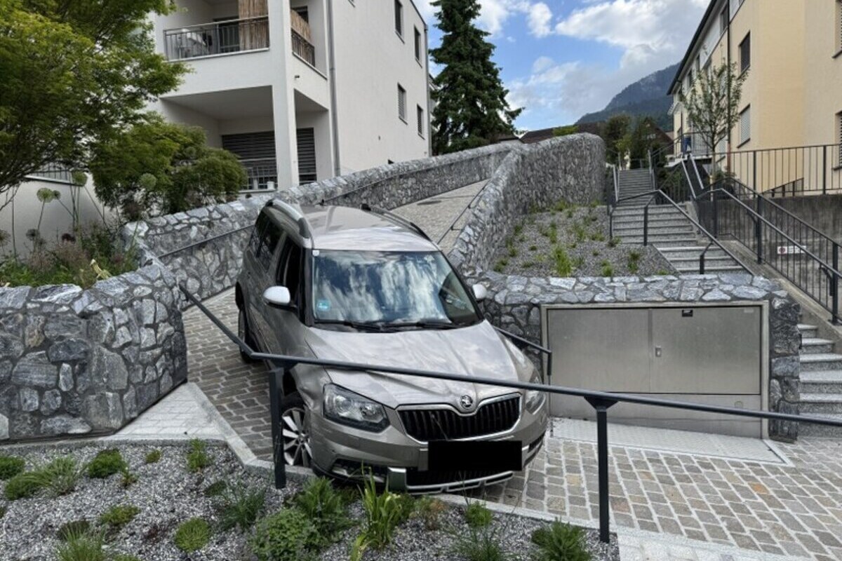 Der Lenker eines Personenwagens fuhr gegen 08:25 Uhr beim Verlassen eines Parkplatzes eines Gasthofs an der Herrengasse in Vaduz versehentlich in einen Fussweg ein. In einem Kurvenbereich kollidierte er mit der Front sowie der linken Fahrzeugseite gegen ein angrenzendes Geländer und das Fahrzeug blieb aufgrund der nicht ausreichenden Platzverhältnisse stecken. Am Fahrzeug und am Geländer entstand Sachschaden. Personen wurden nicht verletzt.