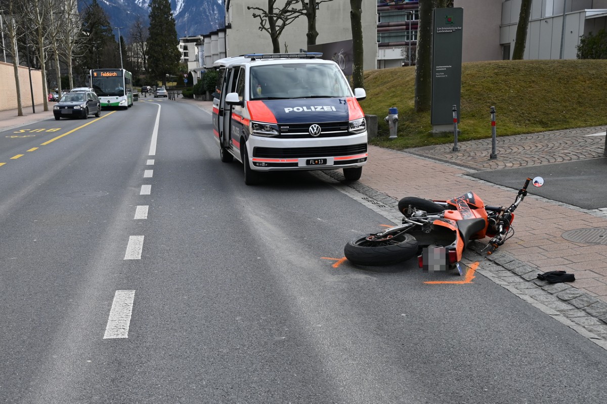 Beim Unfall in Vaduz FL verletzte sich die Motorradfahrerin. (Bildquelle: Landespolizei Fürstentum Liechtenstein)